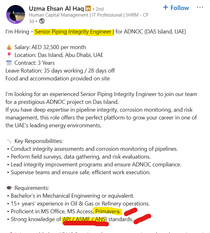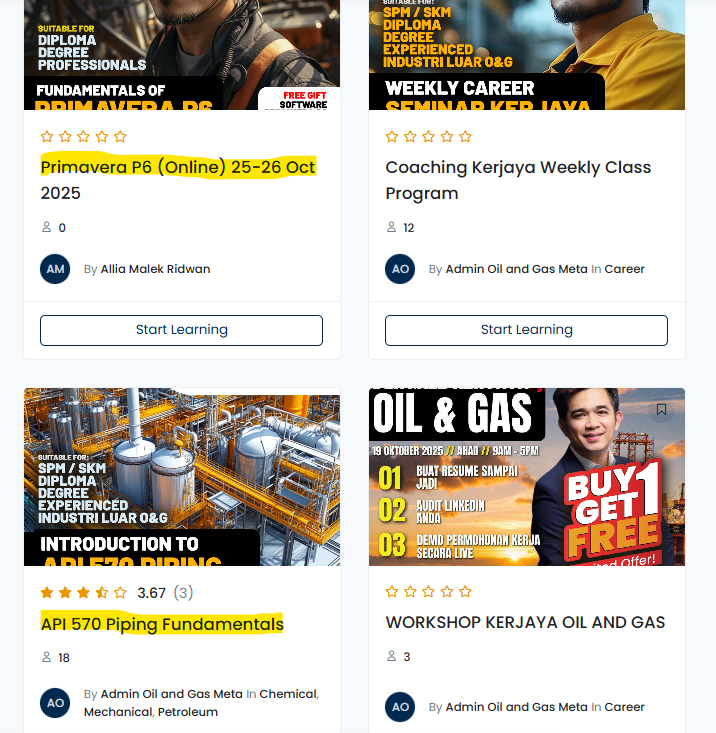 Sijil macam Fundamentals of Offshore Operations, Introduction to Oil and Gas ,API 510 Pressure Vessel, API 570 Piping, ASME, IWCF, Operation & Maintenance related. Skill ni valueable sebab :